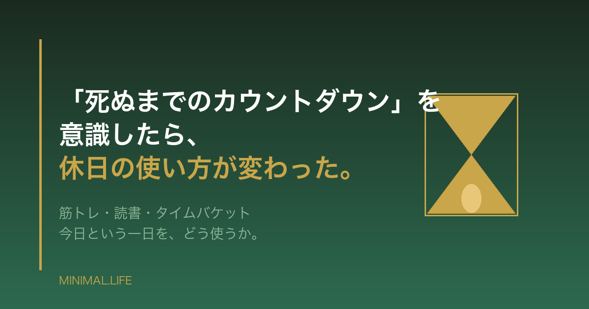 この本をきっかけに、死までの残り日数が表示されるアプリを入れてみた。最初は怖い気がしたけれど、毎日眺めていると逆に「今日も使える一日がある」という感覚になってきた。残り時間を意識することが、今の使い方を真剣にさせてくれる。